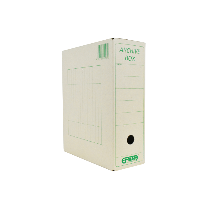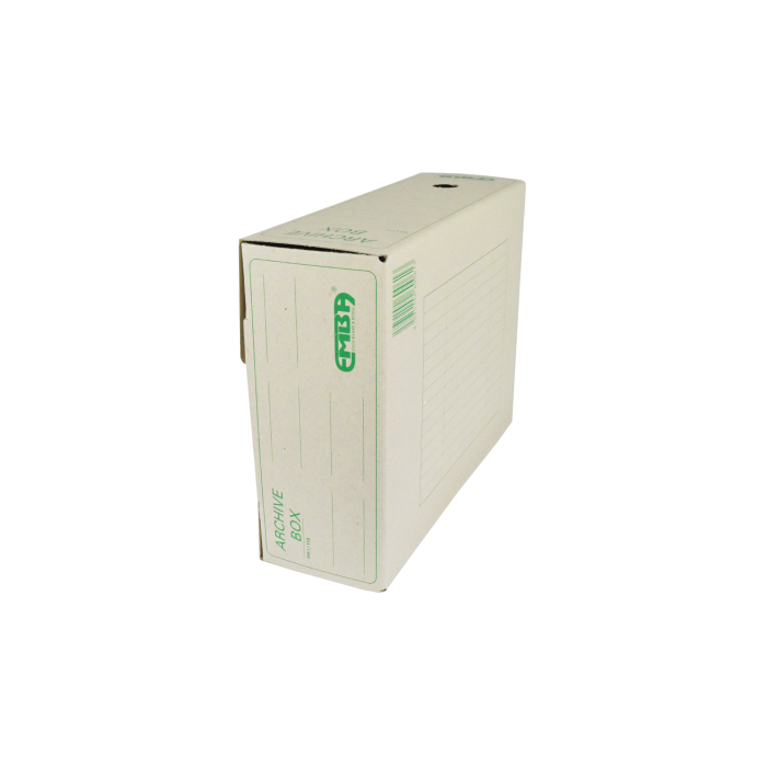 Archívny box z hladkej lepenky na uloženie záznamov do 25 rokov. Používa sa pri rozdelení agendy, účtovných rokov alebo ako firemná farba. Možnosť prehľadného popisu, uloženie v troch polohách. Vhodný v kombinácii so skupinovým boxom - možnosť vložiť 5 boxov I/ 75 alebo kombináciu boxov I/ 50, I/ 75 a I/ 110. Rozmery 110 × 330 × 260 mm. Dodávaný v rozloženom stave. Väčšie balenie 25 ks.