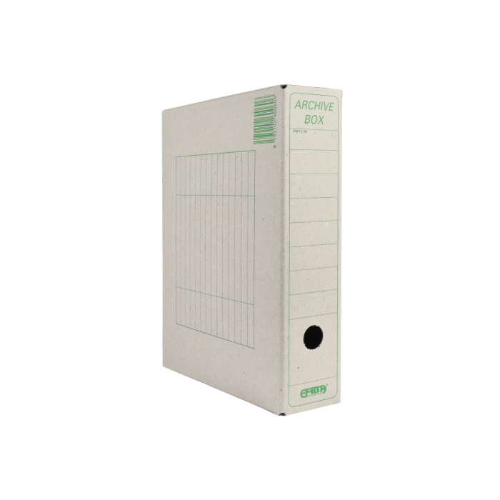Ekologický výrobok. Box z recyklovateľnej špeciálne impregnovanej lepenky odolnej voči atmosferickej vlhkosti na dlhodobé uloženie záznamov. Tri varianty postavenia, kvalitná sieťotlač. Vhodný v kombinácii so skupinovým boxom. Väčšie balenie 25 ks. Rozmery (š x v x d) 75 x 330 x 260 mm.