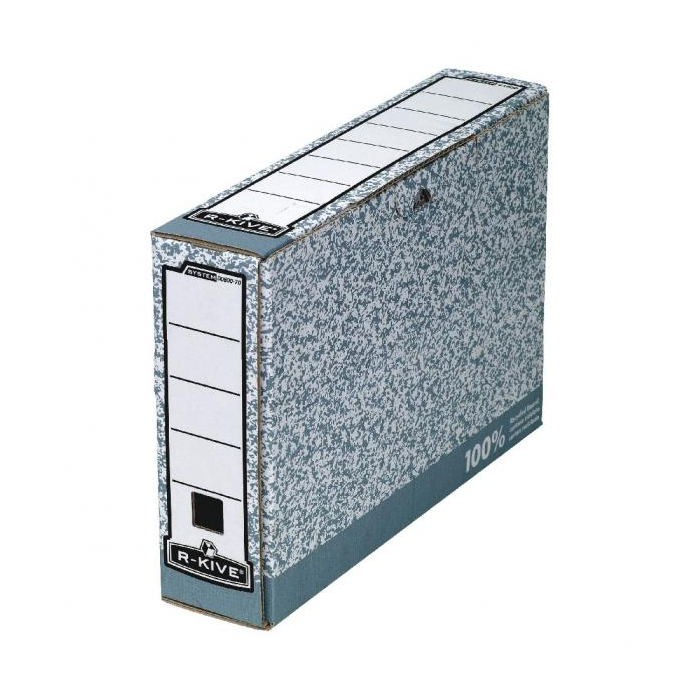 Základný prvok pre archiváciu dokumentov formátu A4. Popisovateľný na chrbte a veku. Šírka chrbta 80 mm. Rozmery (Š × V × D) 80 × 260 × 325 mm. Dodávaný v rozloženom stave. Väčšie balenie 20 ks. Farba sivá/ biela.