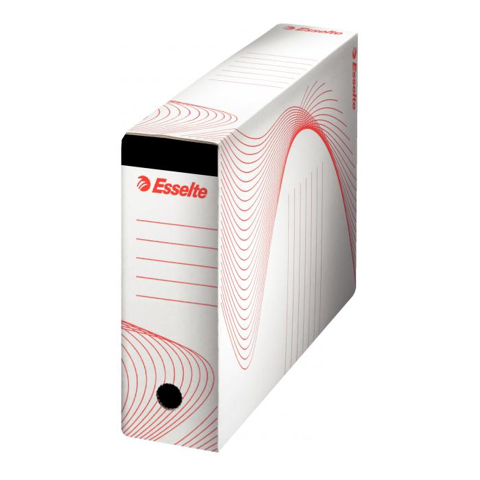 Škatuľa určená na archiváciu dokumentov v závesných obaloch. Šírka chrbta 116 mm. Otvor pre ľahké uchopenie, potlač na kratšej i dlhšej strane umožňuje archiváciu vo vodorovnej i zvislej polohe. Balenie 10 ks. Kapacita 10 závesných obalov.