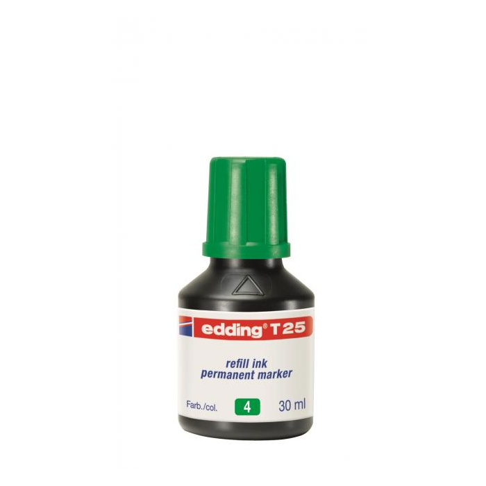 Atrament s kvapkovým dávkovačom na dopĺňanie permanentných popisovačov edding 2000 C, 2200 C, 400, 500, 550, 800, 850, 370 a 390. Pri dopĺňaní vložte prednú časť popisovača špičkou do fľaštičky a po niekoľkých minútach bude popisovač pripravený k opätovnému použitiu. Obsah 30 ml. Tento chemický prípravok je nebezpečný.