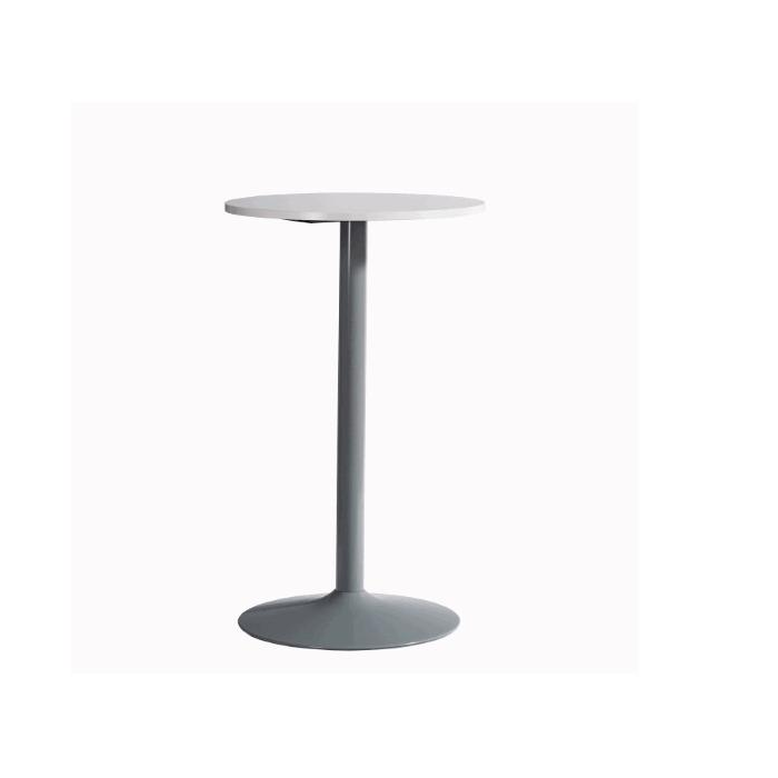 Barový stôl, v.112,5 x š.70 x h.70 cm, rám sivý, doska biela kruh