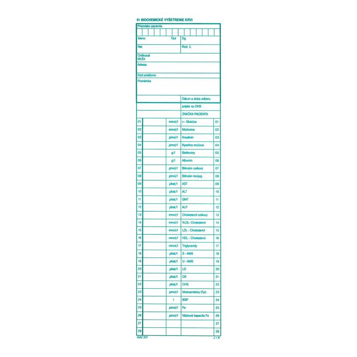 Biochemické vyšetrenie krvi 100 listov