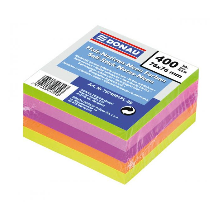 Bloček DONAU 76 x 76 mm, 5 neónových farieb, 400 lístkov