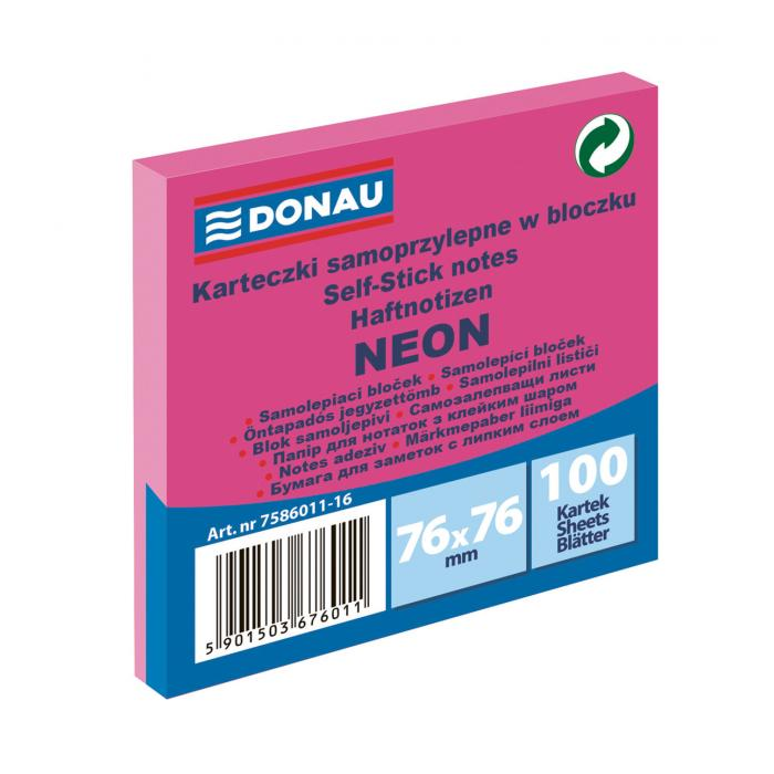 Bloček Donau neónový, 76 x 76 mm, ružový, 100 lístkov