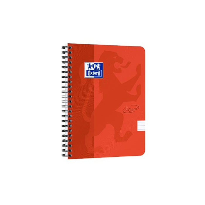 Blok špirálový Oxford Nordic Touch A5+/70 listov linajkový, červený na dvojitej čiernej špirále, dosky z tvrdého kartónu so soft touch povrchom, kompatibilný so SCRIBZEE, biely, dokonale hladký papier Optik Paper+, neprepíja, certifikácia EÚ Ecolabel.