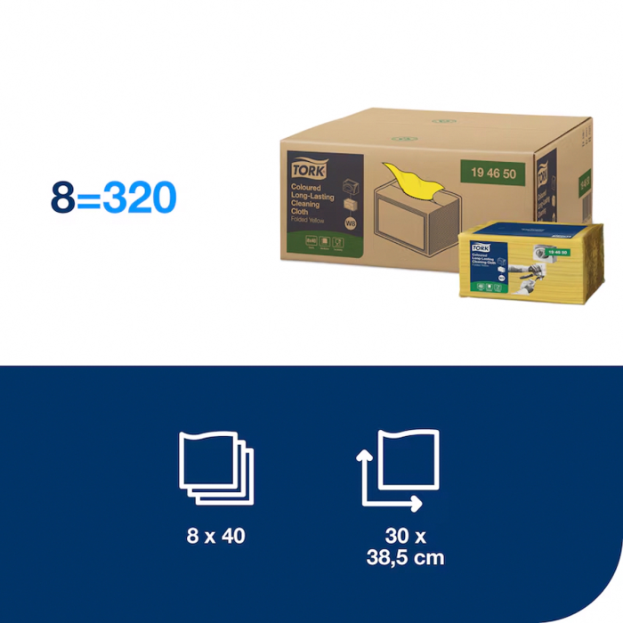 Čistiaca utierka 1-vrstv. TORK Long-Lasting žlté W8, 40 ks