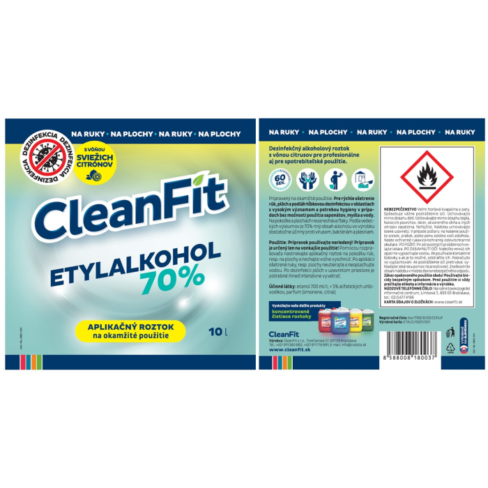 CleanFit dezinfekčný roztok Etylalkohol 70% citrus 10 l