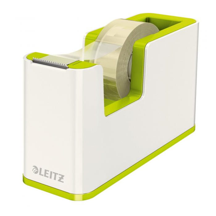 Atraktívny dispenzor s lepiacou páskou v dvojfarebnom prevedení v metalických farbách Leitz WOW s lesklým povrchom. V praktickom dizajne na pohodlné ovládanie jednou rukou. Farba zelená. Pre kotúčiky pások do veľkosti 19 mm × 33 mm.