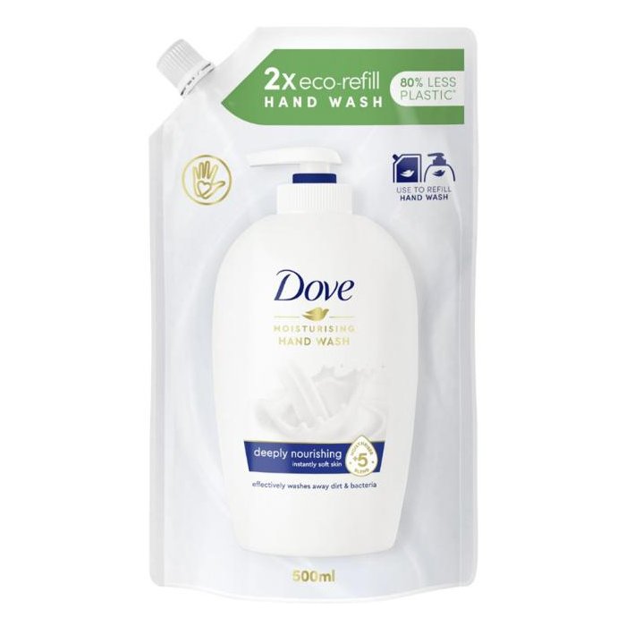 Náhradná náplň tekutého mydla Dove, objem 500 ml.