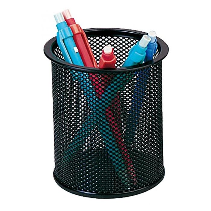 Stojan na ceruzky a perá v drôtenej úprave. Priemer 90 mm, výška 100 mm. Farba čierna.