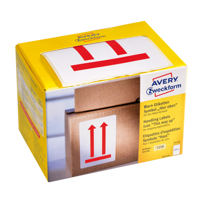 Etikety Avery s varovným symbolom ’ Neklopiť’ 74x100mm na kotúči