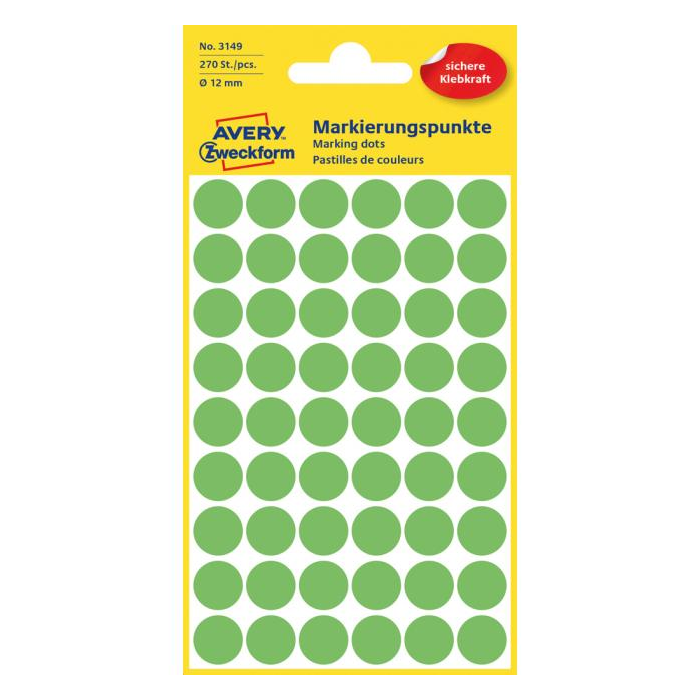 Etikety kruhové 12mm Avery neónovo zelené