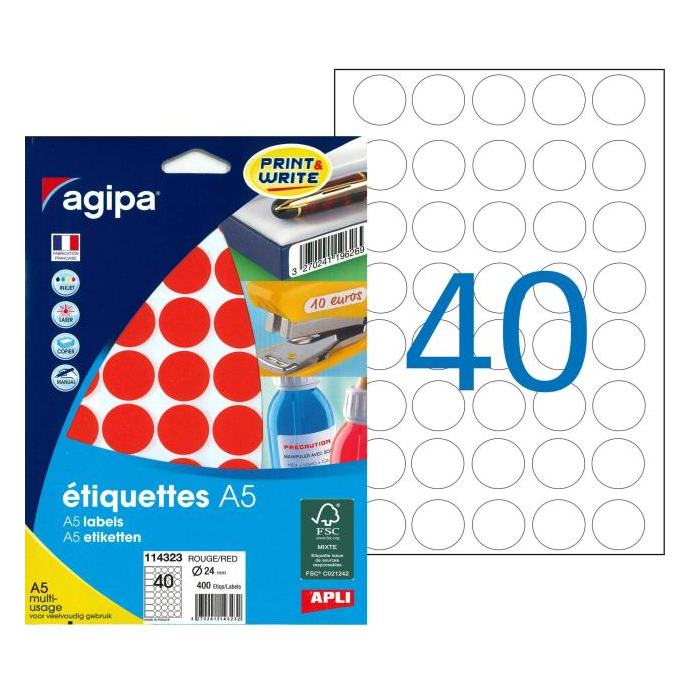 Etikety kruhové 24mm Agipa A5 červené