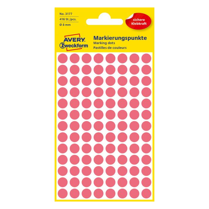 Etikety kruhové 8mm Avery neónovo červené