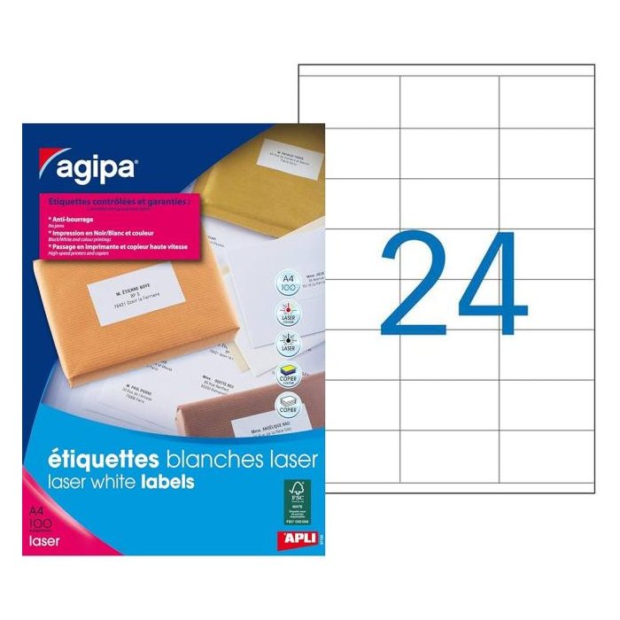 Etikety laser 70x35mm Agipa A4 100 hárkov