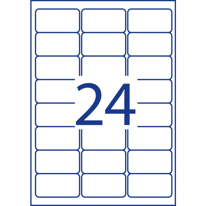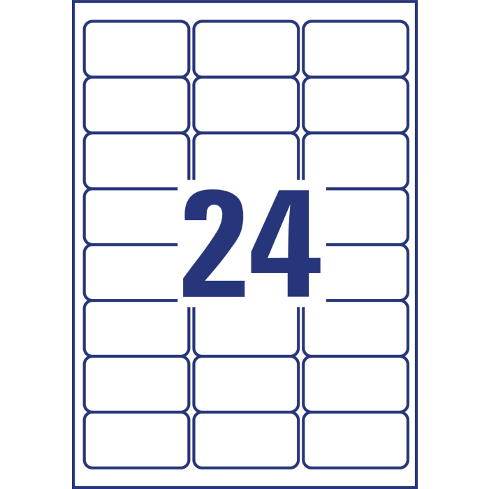 Veľmi odolné polyesterové etikety s nepermanentným lepidlom umožňujú odlepenie etikety bez zanechania stôp po lepidle. Sú odolné voči natrhnutiu, mastnote, nečistotám, UV žiareniu a teplotám od −20 ° do +80 °C a vhodné pre tlač v laserových tlačiarňach a kopírkach. Rozmery v mm : 63,5 × 33,9. Farba biela. Etikety na hárku 24 kusov. Balenie 20 hárkov.