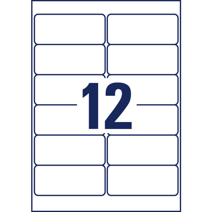 Rozmery v mm : 99,1 × 42,3. Farba biela. Etikety na hárku 12 kusov. Balenie 20 hárkov.