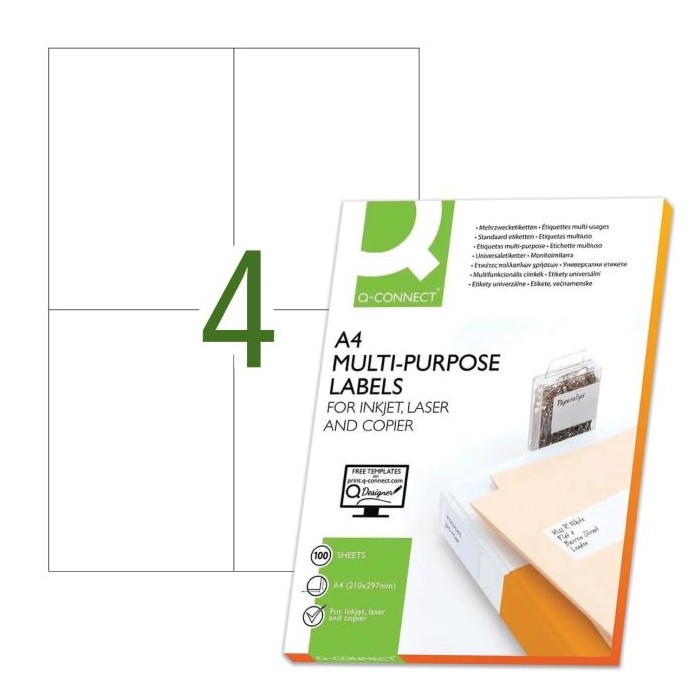 Etikety univerzálne 105x148,5mm Q-CONNECT A4 100 hárkov