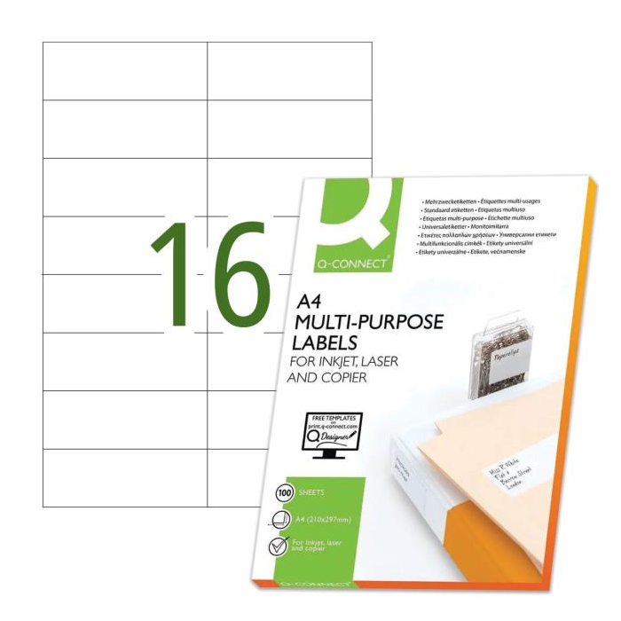 Etikety univerzálne 105x37 mm Q- CONNECT A4 100 hárkov