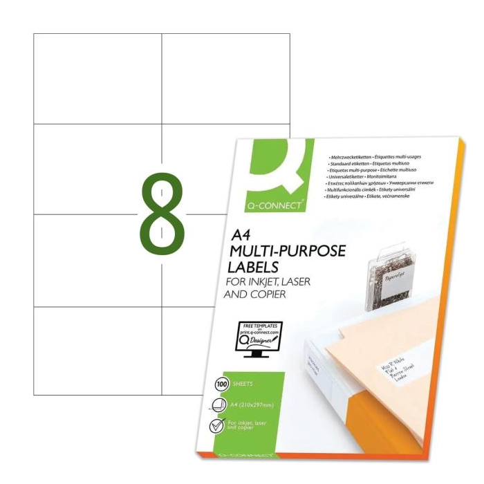Etikety univerzálne 105x74mm Q-CONNECT A4 100 hárkov
