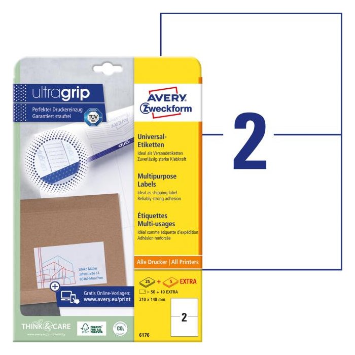 Biele univerzálne etikety vhodné na každodenné použitie v atramentových a laserových tlačiarňach a kopírovacích strojoch. Vďaka inovatívnej technológie ultragrip sa môžete spoľahnúť na bezchybné natiahnutie archu a tlač bez zasekávania. Bezpečnostný okraj QCT zabraňuje zanášaniu tlačiarne lepidlom. Pre laserové tlačiarne testované