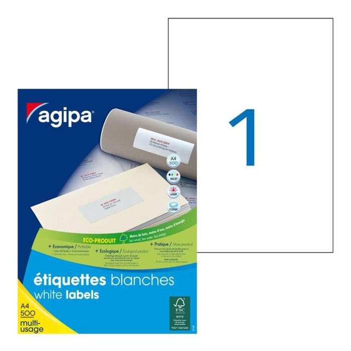 Etikety univerzálne 210x297mm Agipa A4 500 hárkov