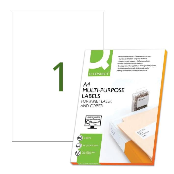 Etikety univerzálne 210x297mm Q-CONNECT A4 100 hárkov