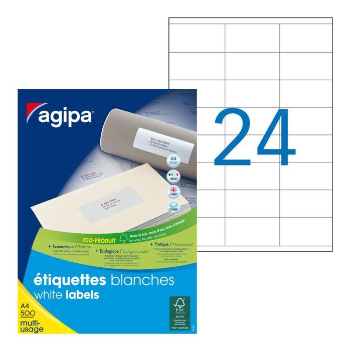 Etikety univerzálne 70x35mm Agipa A4 500 hárkov
