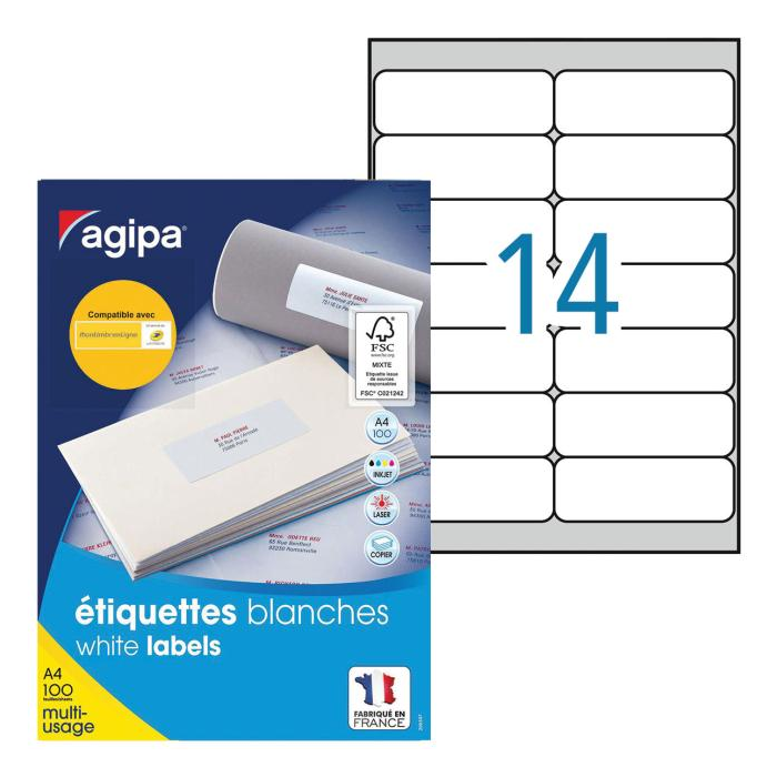 Etikety univerzálne 99,1x38,1mm Agipa A4 100 hárkov