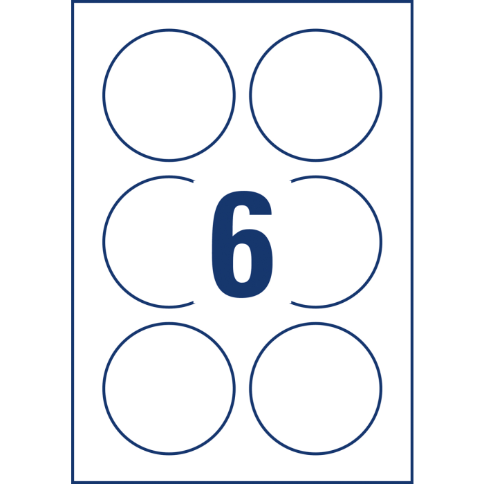 Biele kruhové univerzálne etikety vhodné na každodenné použitie v atramentových a laserových tlačiarňach a kopírovacích strojoch. Ostrá tlač bez bez rozmazávania. Etikety su vyrobené spôsobom šetrným k životnému prostrediu, majú certifikáciu FSCR, sú bielené bez použitia chlóru. Šablóny a softvér pre jednoduchú a rýchlu tlač etikiet k dispozícii zdarma. Formát A4. Balenie 10 hárkov. Priemer 80 mm.