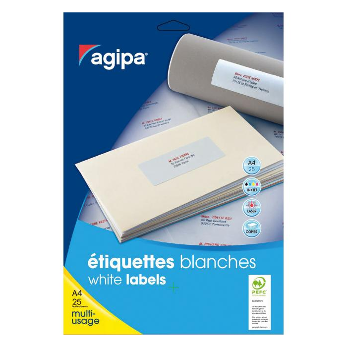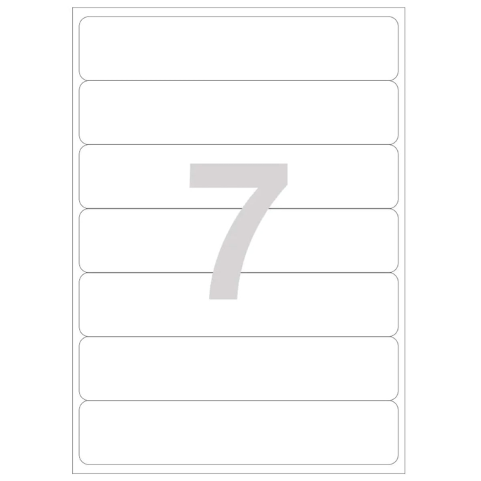 Etikety so zaoblenými rohami na tlač v atramentových a laserových tlačiarňach. Gramáž 158 g/-m2, hrúbka 154 um. Formát A4. Farba biela.