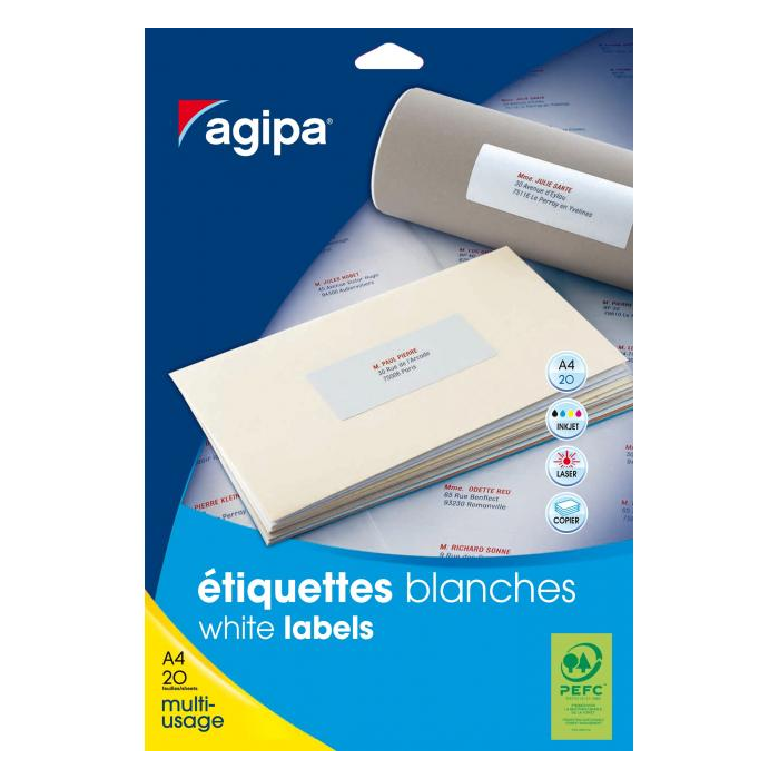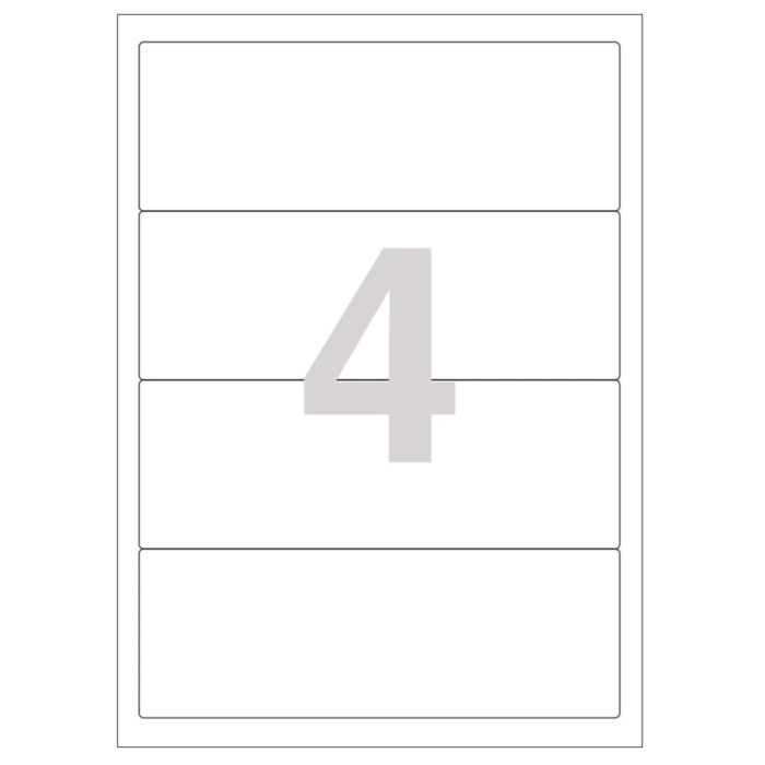 Etikety so zaoblenými rohami na tlač v atramentových a laserových tlačiarňach. Gramáž 158 g/-m2, hrúbka 154 um. Formát A4. Farba biela.