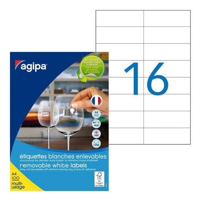 Etikety univerzálne odnímateľné 105x37 mm Agipa A4 100 hárkov
