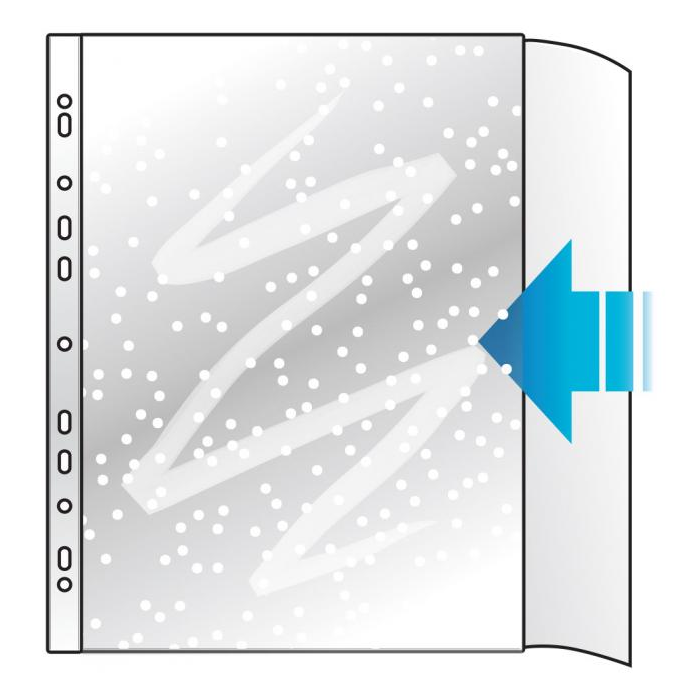 Obaly s eurodierovaním vhodné na zakladanie hrubších materiálov do formátu A4. Povrch matný. Otvor po dlhšej strane obalu uzatvorený chlopňou. Balenie 5 ks. Balené v sáčku.
