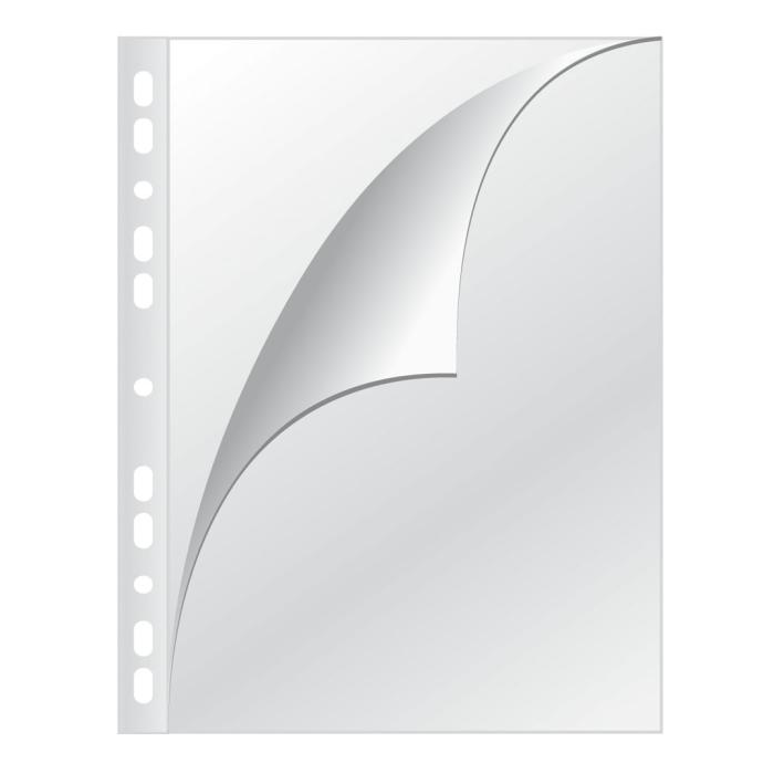 Lesklé polypropylénové euroobaly s otvorom zhora a zboku („L“) balené v sáčku. Formát A4. Balenie 100 ks.