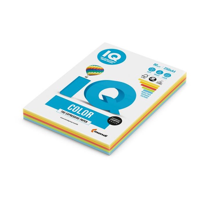 Farebný papier IQ color 5x50 mix intenzívne farby, A4, 80g