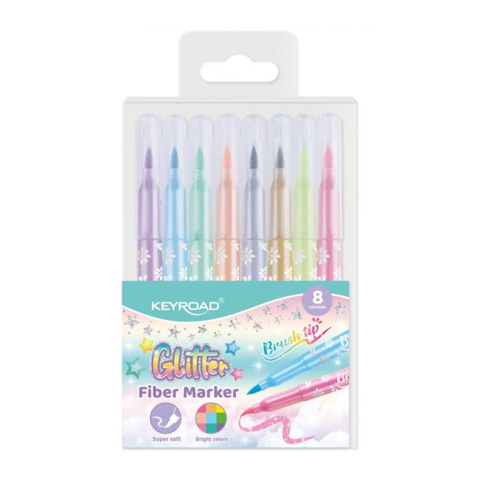 Trblietavé fixky KEYROAD Fiber Marker v intenzívnych pastelových odtieňoch, ktoré oživia každú prácu s trblietavým povrchom pre oslnivý efekt s mäkkým štetcovým hrotom, vďaka čomu sú ideálne na presné farbenie umývateľný atrament, ktorý sa ľahko zmýva z rúk a oblečenia sada obsahuje 8 farieb farba: rôzne pastelové farby