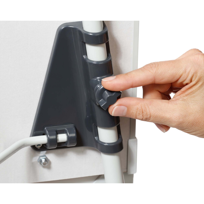 Trojnohý magnetický flipchart s nastaviteľnou výškou, vhodný na všetky dostupné papierové bloky. Sklápací držiak papierových blokov, odkladacia lišta na popisovače po celej šírke tabule. Farba svetlosivá.