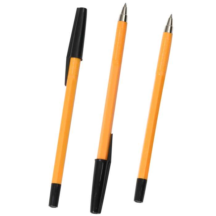 Jednorazové guľôčkové pero s oranžovým plastovým telom. Guľôčka 0,7 mm, šírka stopy 0,3 mm. Väčšie balenie 20 ks v jednej farbe. Farba náplne čierna.