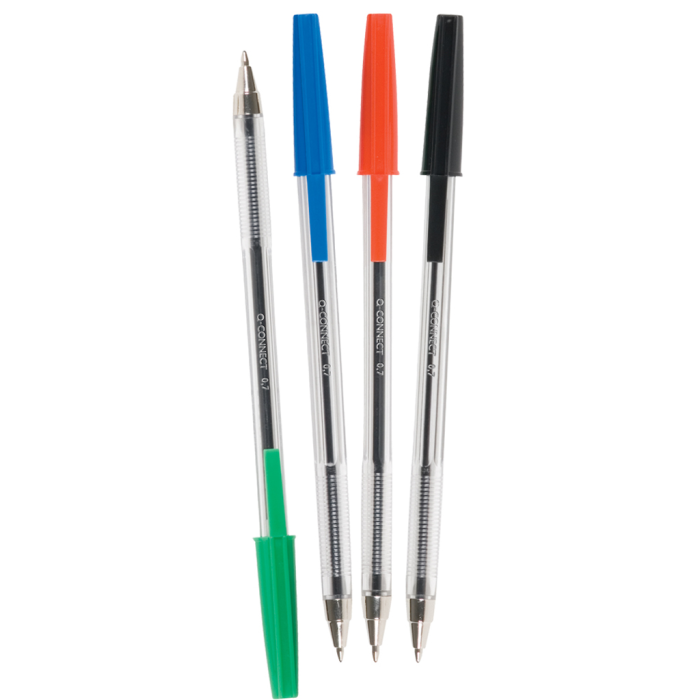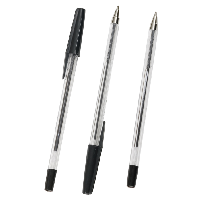 Jednorazové guľôčkové pero s priehľadným telom a viditeľnou farbou atramentu. Guľôčka 1 mm, širka stopy 0,7 mm. Väčšie balenie 20 ks v jednej farbe. Farba náplne čierna.