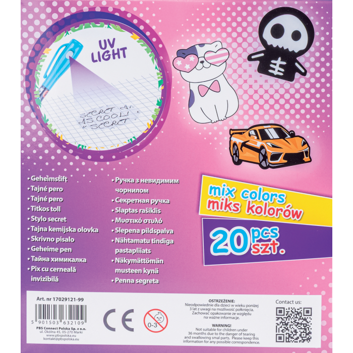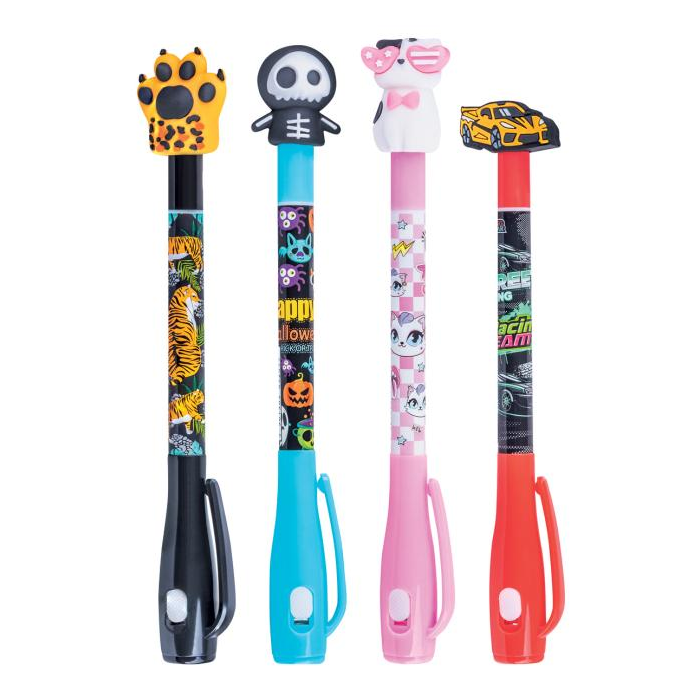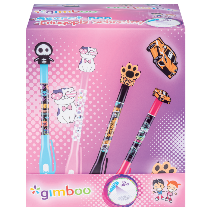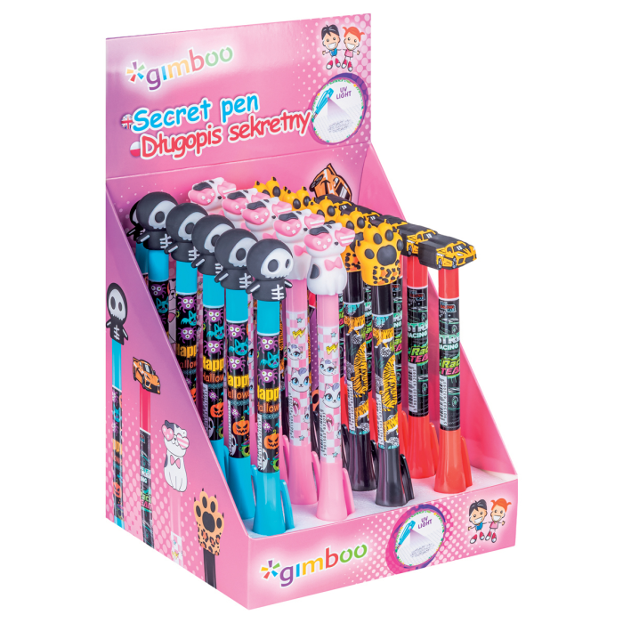 Guľôčkové pero SECRET GIMBOO, neviditeľné, s podsvietením, blister, mix motívov, displej 20 ks