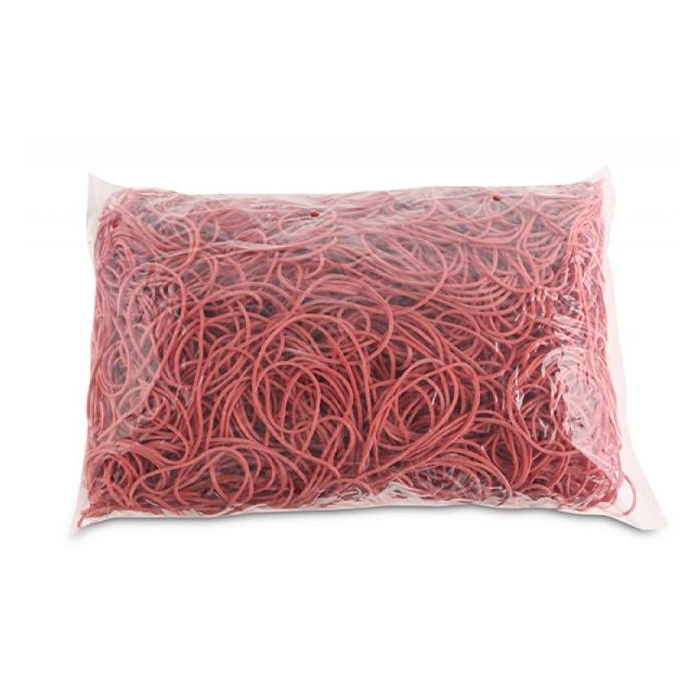 Odolné a pružné gumičky vyrobené z materiálu s prímesou gumy (60 %). Rozmery (hrúbka × šírka) 1,5 × 1,5 mm. Priemer 100 mm. Farba červená.