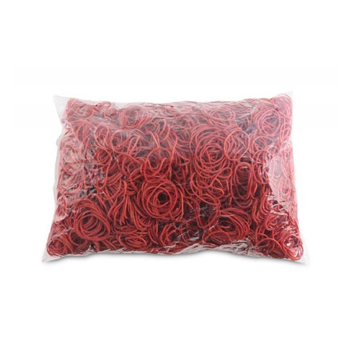 Odolné a pružné gumičky vyrobené z materiálu s prímesou gumy (60 %). Rozmery (hrúbka × šírka) 1,5 × 1,5 mm. Priemer 30 mm. Farba červená.