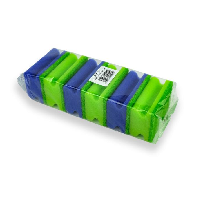 Tvarovaná hubka s abrazívnou vrstvou, trendy farby.