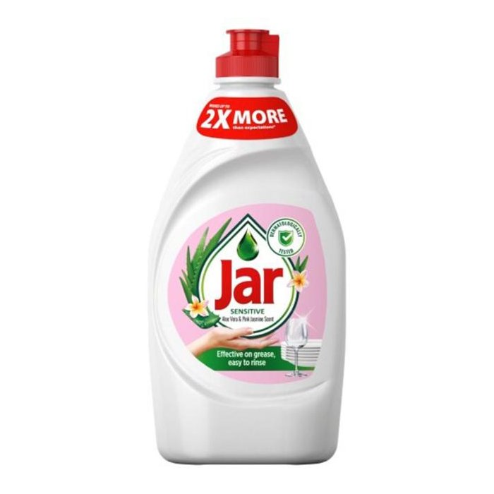 Drez plný riadu už vám nemusí robiť starosti. Čistiaci prípravok Jar Sensitive Aloe Vera & Pink Jasmine si hravo poradí s mastnotou aj zaschnutými zvyškami jedla a zanechá riad dokonale čistý a lesklý.