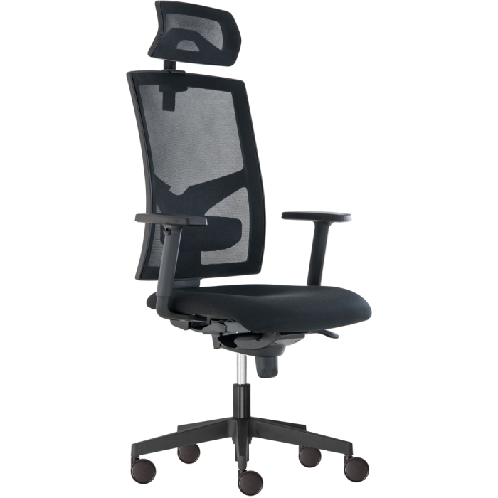 Kancelárska stolička vyššej kategórie z radu GAME s výškovo nastaviteľným sieťovaným operadlom s mechanickým zámkom a samostatne výškovo nastaviteľnou bedrovou opierkou.