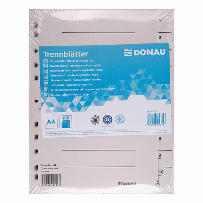 Kartónový rozraďovač DONAU 1-10 sivý