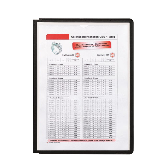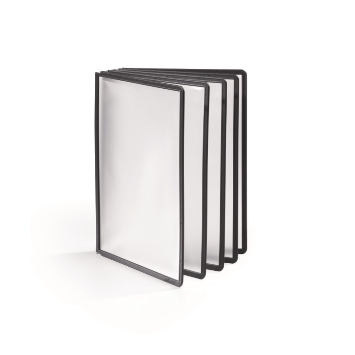 Displejový panel vyrobený z matného antireflexného polypropylénu pre systém Sherpa, kovové držiaky a rotačný stojan. Vložený materiál je kopírovateľný a skenovateľný. Pevný farebný rám s pozíciami pre indexy. Formát A4. Balenie 5 ks.
