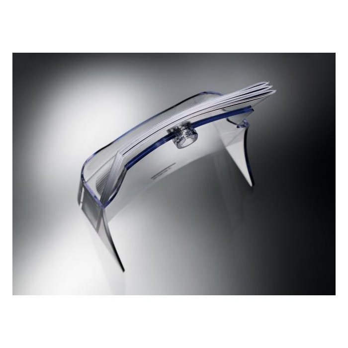 Stolný stojan s jedným odkladačom unikátneho dizajnu z vysokokvalitného akrylu. Ideálny na brožúry, katalógy a letáky. Hĺbka odkladača 30 mm. 25-ročná záruka na odolnosť voči UV žiareniu. Rozmery 170 × 200 × 75 mm. Farba číra.